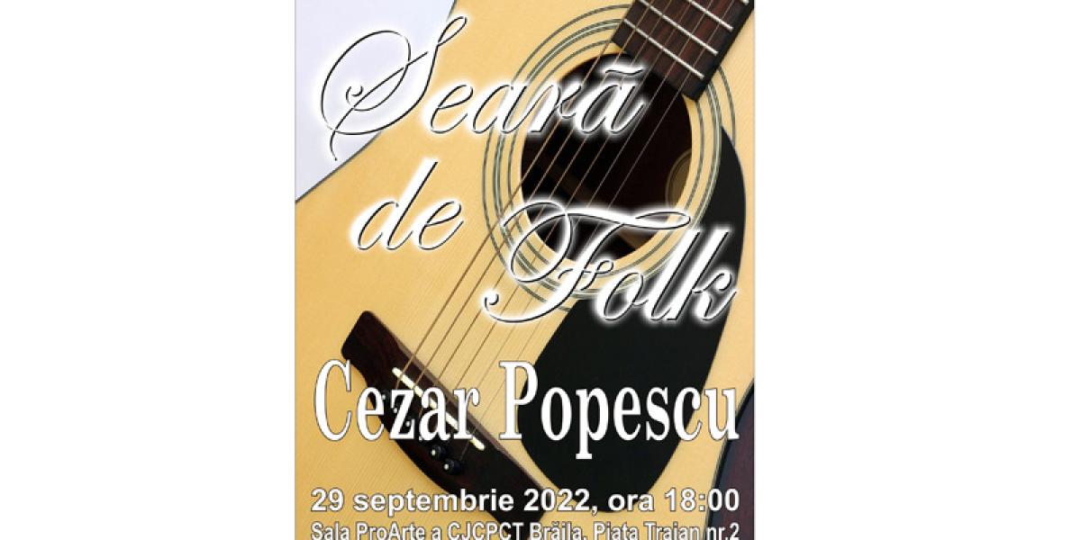 Potrivit organizatorilor evenimentului cultural, muzica folk este, pentru artistul Cezar Popescu, o muzică de suflet pe care ne-o împărtășește prin îmbinarea armonioasă a vocii sale puternice și a poeziei, cu mesajul transmis și linia melodică atent aleasă.