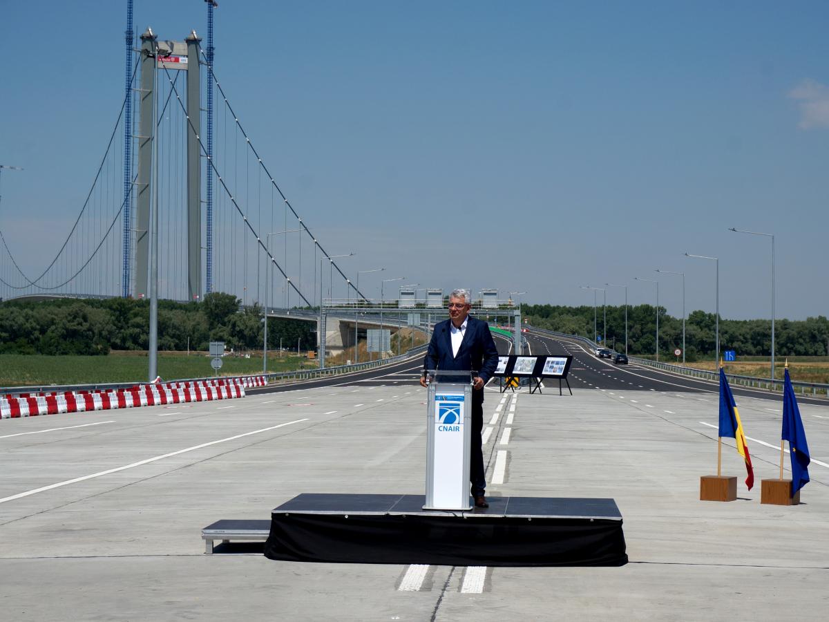 ”Comentariul este foarte simplu: autorizațiile sunt în sarcina beneficiarului, «clar». Probabil. Nu știu. Cert este că Ministerul Transporturilor, prin CNAIR, când preia podul, trebuie să îl preia cu toate autorizațiile și așa mai departe. Dar acum nu este podul preluat și nu poate fi vorba despre așa ceva. După opinia mea. Este vorba despre o deschidere parțială pe timpul zilei. Practic, podul este în teste. Am citit și opinii din astea: «domnule, pune în pericol siguranța traficului și a cetățenilor». NU! Este vorba în special la Ape de partea aceasta de poluare, de mediu. Dacă peștișorul suferă. Dacă rățușca se dă cumva cu capul de stâlp. Chestii de genul ăsta. Evident că trebuie dată acea autorizație, dacă așa prevede legea, dar lucrările nu s-au terminat. Și a fost deschis parțial pentru circulație. Practic, e în teste. Nu a fost o predare – preluare definitivă, să aibă nevoie de toate autorizațiile. Eu sunt convins sau sper că toți cei care sunt îndriduiți să respecte aceste legi au ținut cont de lucrul acesta”, a declarat Tudose.