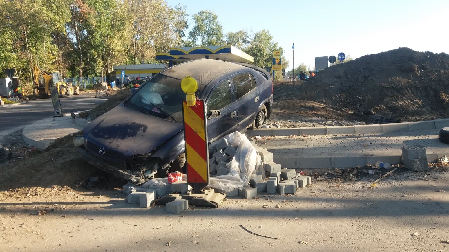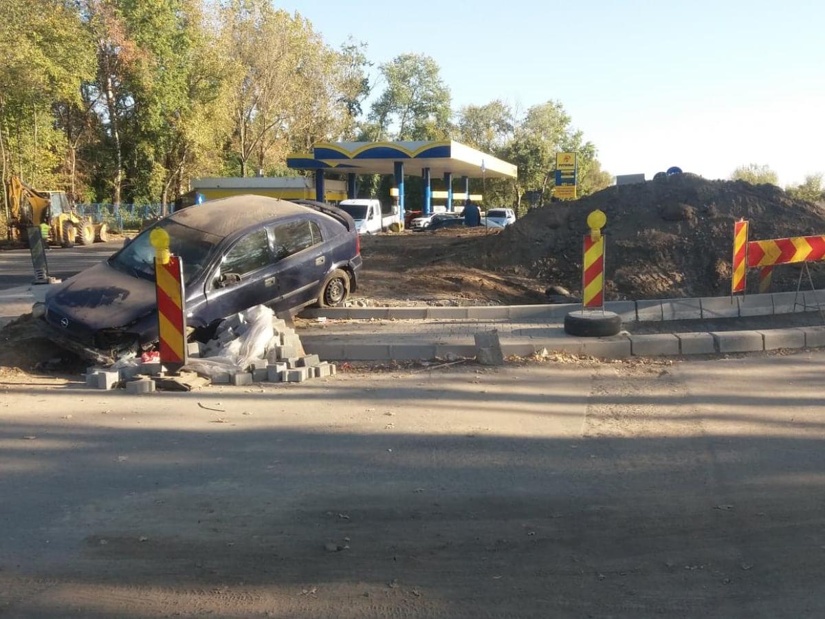 * două mașini au intrat, la propriu, în sensul giratoriu aflat încă în construcție, în noaptea de vineri spre sâmbătă * șoferii ar fi acuzat faptul că giratoriul este slab semnalizat * evenimentul a fost înregistrat ca tamponare, deoarece nu au existat victime