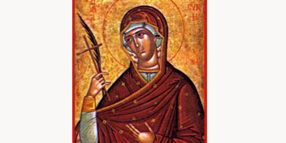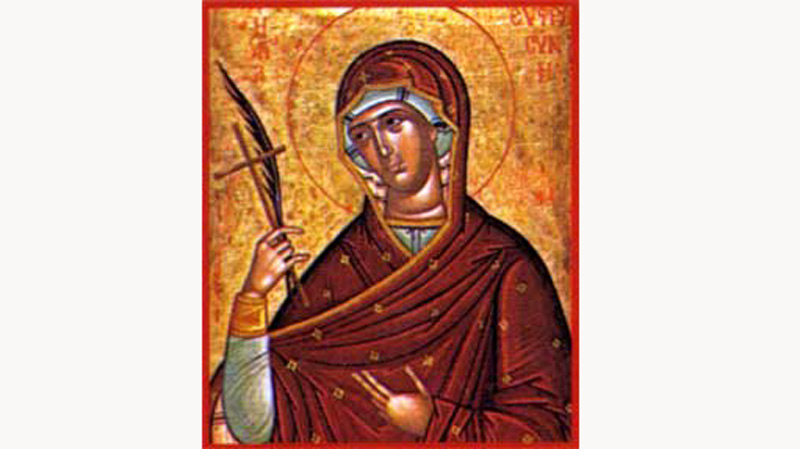 Sfânta Cuvioasă Eufrosina a trăit în cetatea Alexandriei, pe vremea împăratului creştin, (sec V d.H.). A fost rodul stăruinţei în rugăciune fierbinte către Dumnezeu a părinţilor ei, care au fost binecuvântaţi tocmai când îşi pierduseră orice nădejde. La vârsta de 12 ani, Eufrosina a devenit orfană de mamă, rămânând sub îngrijirea tatălui său, Pafnutie. Împlinind vârsta de 18 ani şi nevrând să se căsătorească, Eufrosina a părăsit în taină casa părintească şi, îmbrăcând haine bărbăteşti, a intrat într-o mănăstire de călugări. După ce a primit-o în mănăstire, stareţul a pus-o sub ascultarea părintelui Agapit. Până la sfârşitul vieţii sale - vreme de 38 de ani - Eufrosina avea să trăiască în acest aşezământ monahal, dobândind o viaţă duhovnicească sfântă, fără ca cineva să ştie că este femeie, nu bărbat.