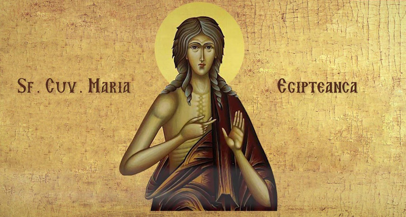 Maria Egipteanca s-a născut în Egipt. La vârsta de 12 ani şi-a părăsit părinţii şi a mers în Alexandria, unde timp de 17 ani a dus o viaţă desfrânată. La vârsta de 29 de ani, părăseşte Alexandria şi ajunge la Ierusalim. Pretextul i-a fost oferit de pelerinajul unor tineri din Egipt şi Libia, care călătoreau pe mare spre Ierusalim, pentru a participa la sărbătoarea Înălţării Sfintei Cruci.