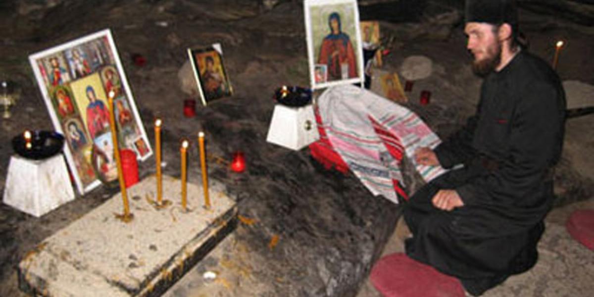 Părinţii i-au aşezat trupul în mijlocul peşterii, unde a stat multă vreme. După ani, ieromonahul Elefterie, auzind de toate acestea, s-a retras la Mănăstirea Secu şi, de aici, la Sihla, ca să fie mai aproape de aceea care i-a fost soţie. A trăit tot sub stâncile Sihlei, rugându-se Lui Dumnezeu zi şi noapte. Apoi, trecând din viaţa aceasta, a fost îngropat în poiana unde se află acum schitul.