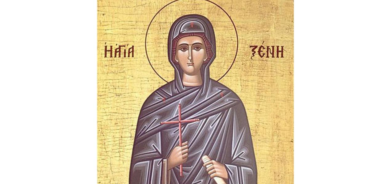 Cuvioasa Xenia era originară din Roma. Din dragoste pentru Hristos, ea a ales să fugă împreună cu două slujnice în Insula Cos, atunci când părinţii s-au hotărât să o mărite. A renunţat la numele Eusebia, adoptând un altul, “Xenia” (care se tâlcuieşte “străină”) vrând să arate că se înstrăinează de lumea aceasta trecătoare.