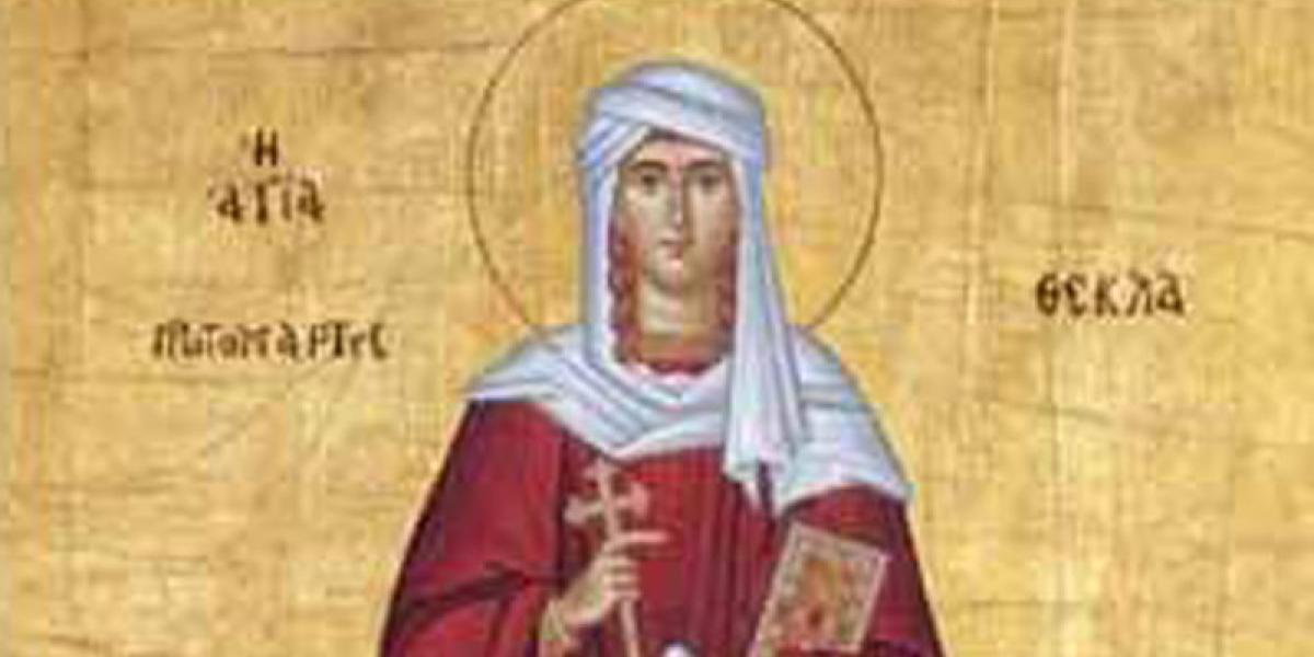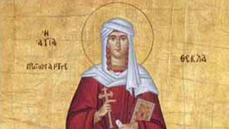 Tecla a fost prima femeie-martir pentru Hristos, fiind socotită, pe bună dreptate, “întocmai cu apostolii”. Sfânta Mare Muceniţă Tecla s-a născut în cetatea antică Iconiu, în secolul I d.H., din părinţi păgâni. Ea s-a logodit cu Tamir, un tânăr de neam bun, în vremea în care, la Iconiu, sosise Sfântul Apostol Pavel împreună cu Varnava, ca să predice Evanghelia Domnului.