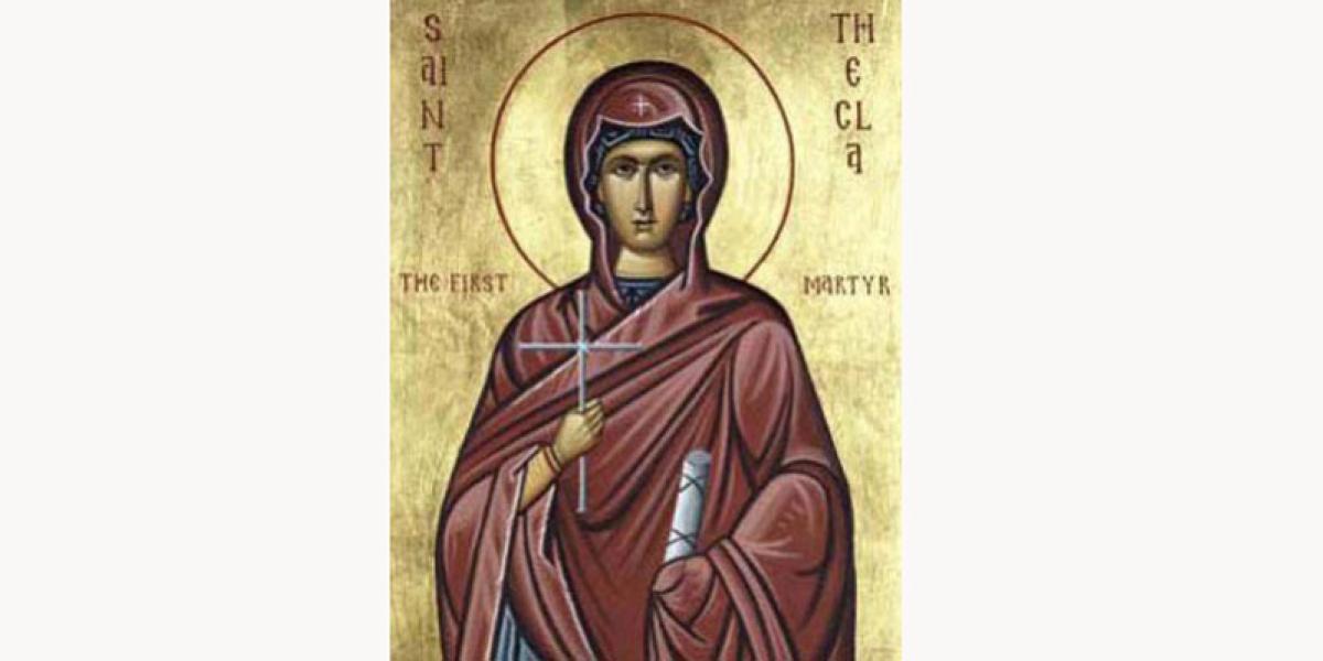 Sfânta Mare Muceniţă Tecla a fost prima femeie-martir pentru Hristos, fiind socotită, pe bună dreptate, “întocmai cu apostolii”. Ea a fost şi a rămas o figură proeminentă a creştinismului timpuriu, alături de femeile mironosiţe, Maria din Magdala şi femeia samariteancă. Tecla s-a născut în cetatea antică Iconiu, în secolul I d.H., din părinţi păgâni. Ea s-a logodit cu Tamir, un tânăr de neam bun, în vremea în care, la Iconiu, sosise Sfântul Apostol Pavel împreună cu Varnava, ca să predice Evanghelia Domnului.