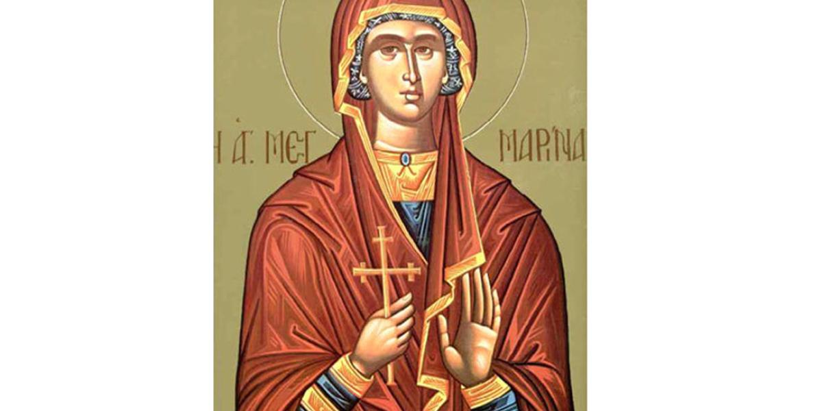 Sfânta Mare Muceniţă Marina s-a născut în Antiohia Pisidiei, din părinţi păgâni. Marina a primit învăţătura despre Domnul Iisus Hristos încă de la vârsta de 12 ani. După moartea mamei, tatăl Marinei a început să o urască pentru credinţa în Hristos şi nu a mai considerat-o fiica sa.