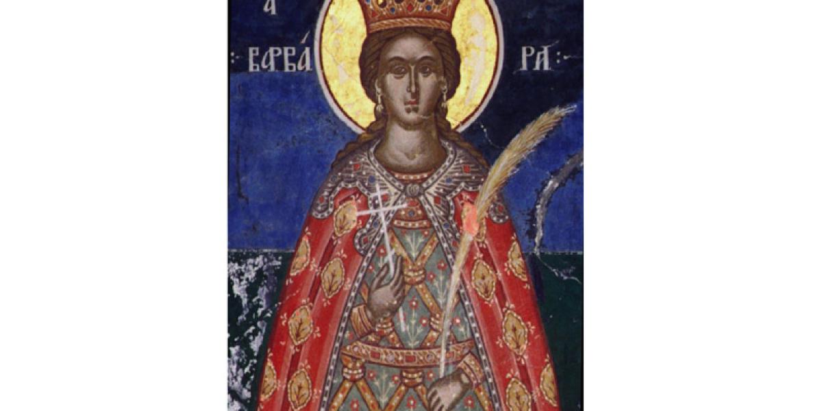 Sfânta Mare Muceniţă Varvara a trăit la Heliopolis, în timpul domniei împăratului roman Maximian (284-305 d.H.). Din pricina frumuseţii sale nemaivăzute, Varvara a fost închisă într-un turn chiar de către tatăl său, Dioscor, care era păgân şi care considera că poporul de rând nu este vrednic să vadă frumuseţea fiicei sale. În acel turn, Varvara le-a spus slujnicelor - păzitoarele sale - adevărul despre zeii păgâni: