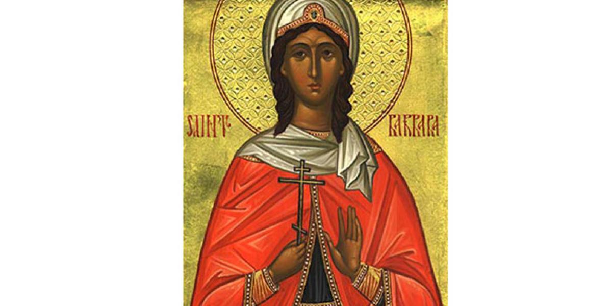 Sfânta Mare Muceniţă Varvara a trăit la Heliopolis, în timpul domniei împăratului roman Maximian (284-305 d.H.). Din pricina frumuseţii sale nemaivăzute, Varvara a fost închisă într-un turn chiar de către tatăl său, Dioscor, care era păgân şi care considera că poporul de rând nu este vrednic să vadă frumuseţea fiicei sale. În acel turn, Varvara le-a spus slujnicelor - păzitoarele sale - adevărul despre zeii păgâni: