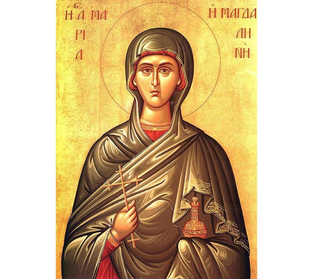 Sfânta Maria Magdalena, pe care Biserica o prăznuiește astăzi, a fost originară din Magdala, sat pescăresc situat pe țărmul vestic al Lacului Ghenizaret și a fost contemporană cu Sfinții Apostoli. Maria a fost tămăduită și i-au fost scoase șapte duhuri necurate de către Domnul Iisus Hristos. După această minune, Maria Magdalena a ales să-L urmeze pe Hristos, pentru tot restul vieții. Maria a fost de față la răstignirea Mântuitorului și a fost prima care a aflat de la îngerul Domnului că Iisus Hristos a înviat din morți.