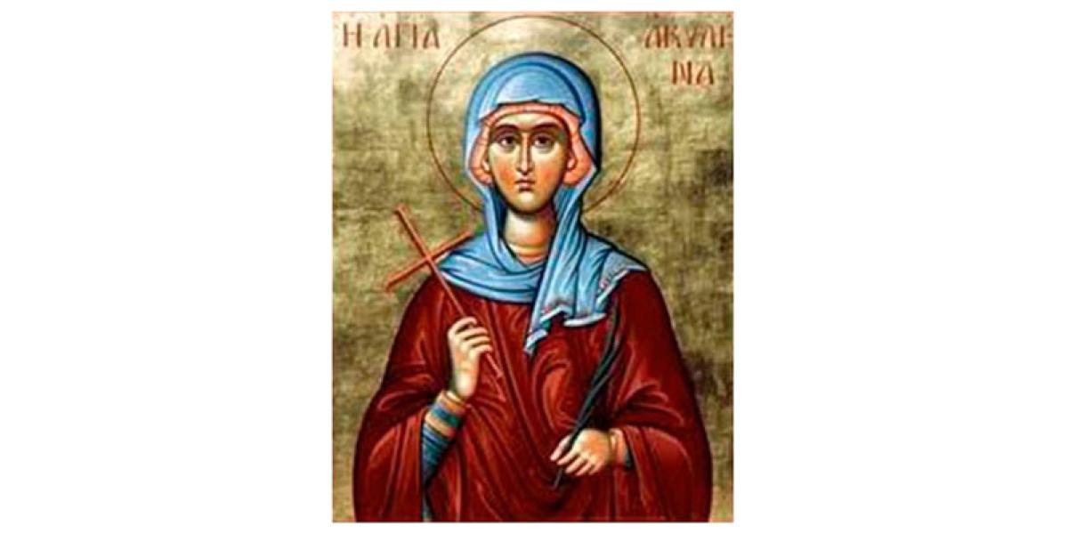 Sfânta Muceniţă Achilina s-a născut şi a trăit în marea cetate Biblos din Palestina antică, din părinţi creştini. La vârsta de 7 ani, Sfânta Achilina cunoştea deja toate tainele credinţei creştine, iar la 15 ani a început să le înveţe pe fetele de aceeaşi vârstă cu ea credinţa în Domnul Iisus Hristos. Totodată, micuţa creştină le îndemna pe copile să nu se mai închine idolilor păgâni.