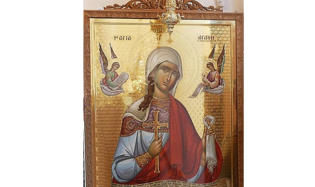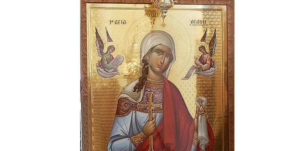 Sfânta Muceniţă Agata s-a născut în cetatea Panormos din Sicilia. Potrivit izvoarelor istorice, Agata era o tânără foarte frumoasă şi bogată. A fost cerută în căsătorie de dregătorul Cvintian, însă a refuzat, ca să trăiască pentru Domnul Hristos. Agata a fost încredinţată unei necredincioase, Afrodisia, care să o facă să lepede de Hristos. Pentru că nu a renunţat la credinţă, a fost supusă la nenumărate chinuri. Printre altele, i-a fost tăiat pieptul cu un cleşte de fier, însă Domnul a vindecat-o. Iată ce scrie în Sinaxar: