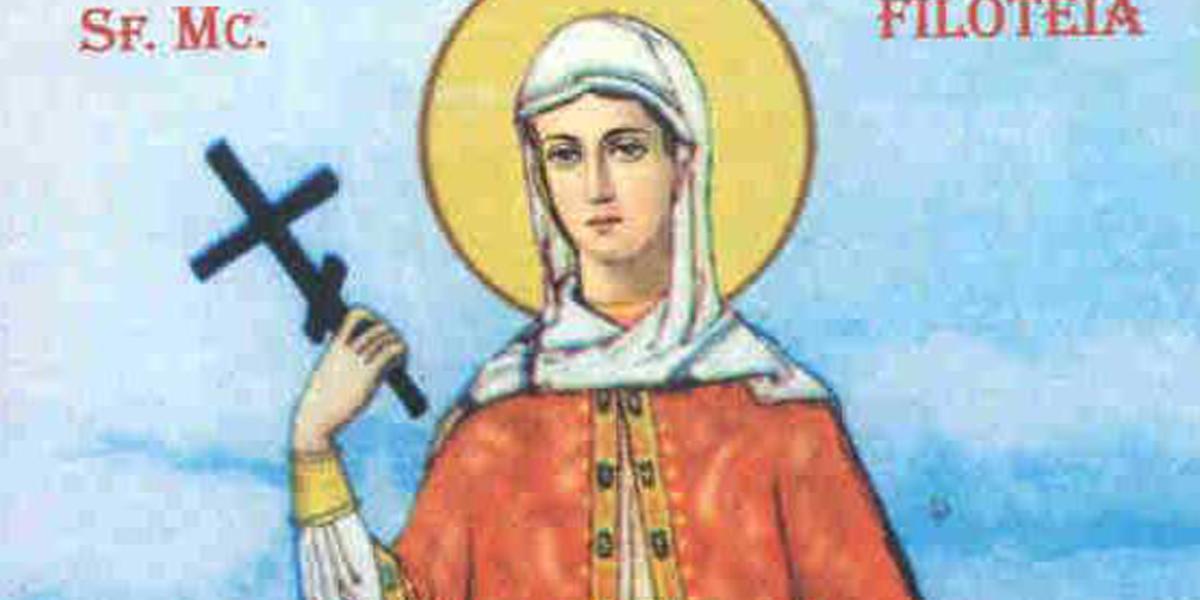 Sfânta Muceniţă Filofteia, pe care-o cinstim astăzi, a trăit în sec. al XIII-lea, în sudul Dunării. Nu se ştie cu exactitate dacă provenea din neam de români (vlahi) sau de bulgari. Numele său în limba greacă înseamnă “iubitoare de Dumnezeu”. Pentru că a dovedit milă faţă de oamenii sărmani, pe care-i hrănea şi-i îngrijea cu bunătate, Filofteia a fost omorâtă chiar de tatăl său, când avea vârsta de numai 12 ani. Deşi moaştele sale s-au aflat la Curtea de Argeş de la sfârşitul sec. al XIV-lea, abia în anul 1950, Sinodul Bisericii Ortodoxe Române a decis generalizarea cultului Sfintei Filofteia.