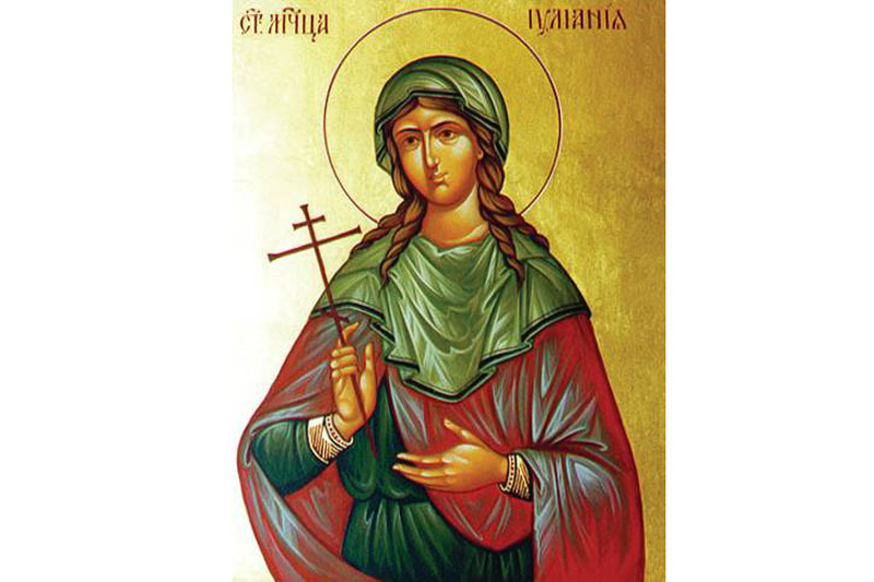 Sfânta Muceniţă Iuliana a trăit şi a pătimit pentru Hristos la sfârşitul secolului al III-lea - începutul secolului al IV-lea d.H. A fost fiica unor cetăţeni bogaţi, de neam ales, care au logodit-o cu Eleusie, senator păgân.
