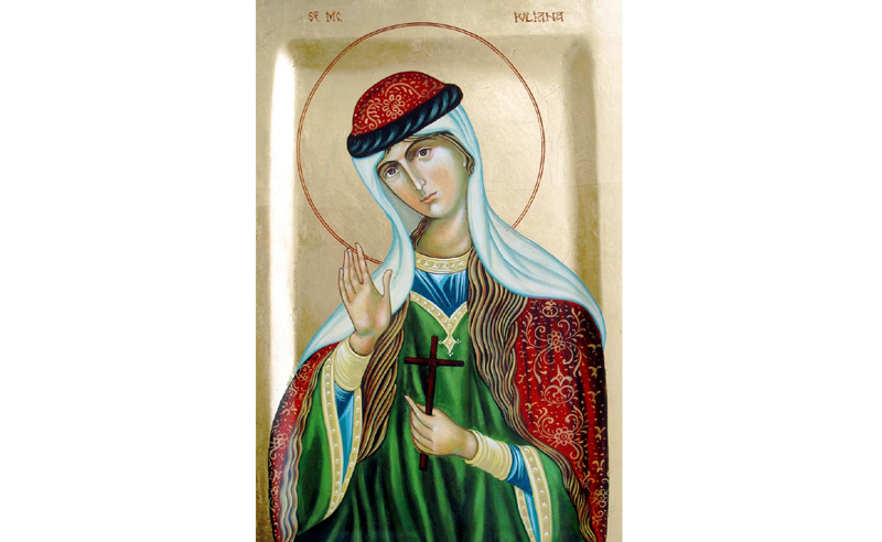 Sfânta Muceniţă Iuliana a trăit şi a pătimit pentru Domnul Iisus Hristos la sfârşitul secolului al III-lea - începutul secolului al IV-lea d.H. A fost fiica unor cetăţeni romani bogaţi, de neam ales, care au logodit-o cu Eleusie, senator păgân.