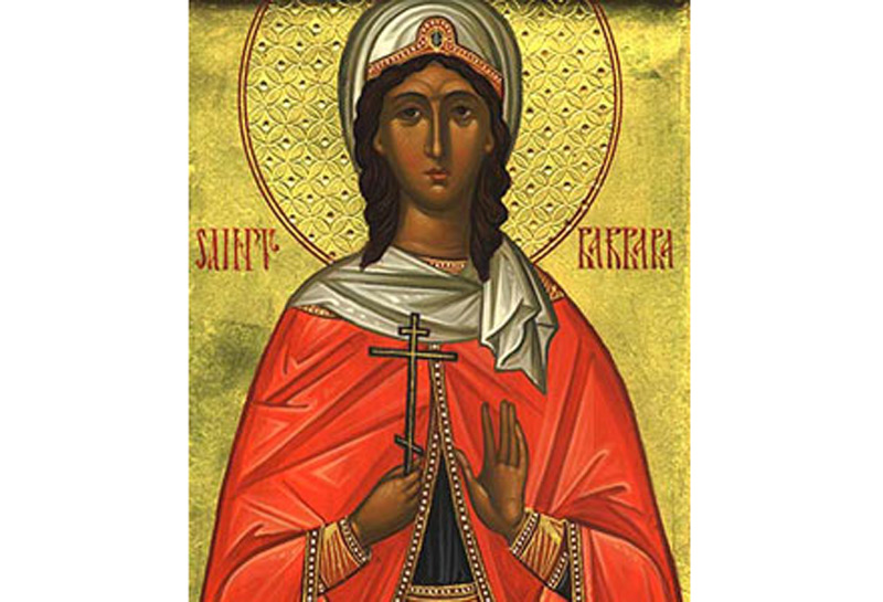 Sfanta Varvara a trait in timpul imparatului Maximian (284-305), la Heliopolis. Din cauza frumusetii sale trupesti este inchisa intr-un turn, de tatal sau Dioscor. Acest tata pagan considera ca poporul nu este vrednic sa vada frumusetea fiicei sale. In acest turn, Sfanta Varvara le vesteste pazitoarelor ei adevarul despre zei: "Zeii pe care ii cinsteste tatal meu sunt facuti de maini omenesti. Pe cei de aur si de argint i-au facut zlatarul (argintarul) si pe cei de piatra i-a facut pietrarul, iar pe cei din lemn i-a cioplit teslarul. Deci, cum acei zei facuti au putut zidi aceasta luminata inaltime cereasca si o frumusete ca aceasta pamanteasca, neputand ei singuri nici umbla cu picioarele, nici lucra cu mainile?".