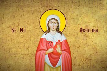 Sfânta Muceniță Achilina s-a născut în Biblos, cetate din Palestina, din părinți creștini. La vârsta de șapte ani, Sfânta Achilina cunoaștea toate tainele credinței creștine, iar la vârsta de 15 ani, a început să le învețe pe fetele de aceeași vârstă credința în Hristos și le îndemna să nu se închine idolilor.