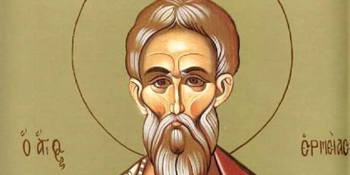 Sfântul Apostol Ermie a fost soldat în armata romană. I s-a cerut în timpul împăratului Antonin Piul (138-161), să renunțe la credința în Hristos. A refuzat și a fost supus la cumplite chinuri: i s-au zdrobit dinții cu o piatră, pielea feței i-a fost luată cu un cuțit, a fost aruncat în foc, dar prin harul lui Dumnezeu a rămas nevătămat.