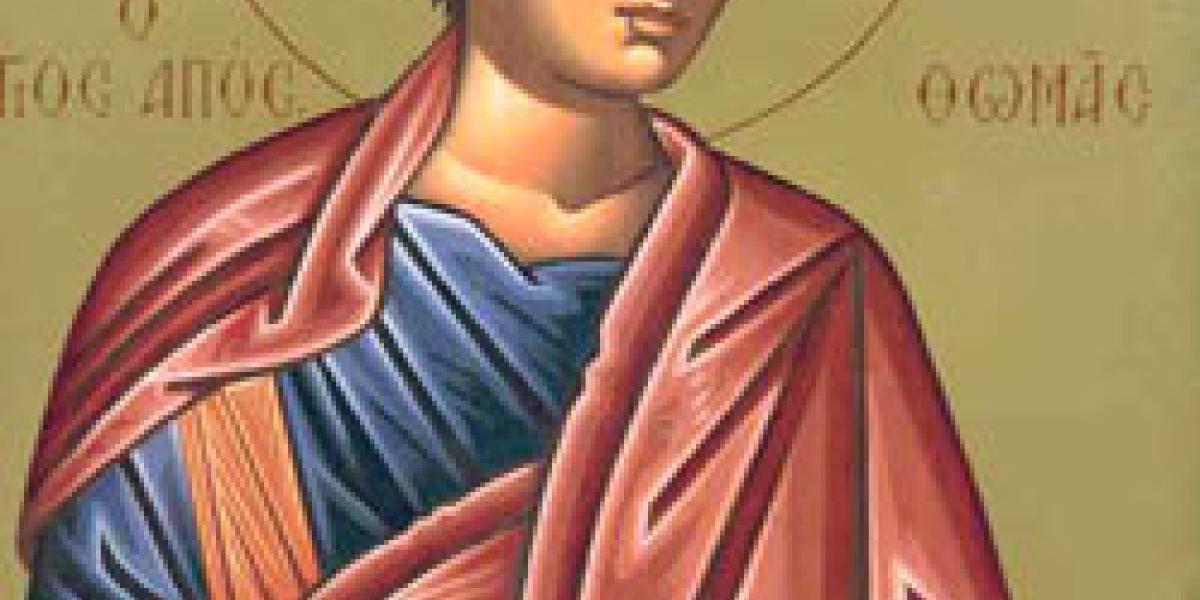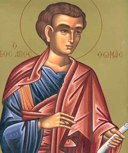 Sfântul Apostol Toma, cunoscut drept “Toma necredinciosul”, era originar din Galileia. Toma (în aramaică te’oma), tradus în greacă “Didymos”, înseamnă “geamăn”. Potrivit autorilor creştini, în aramaică şi în ebraică “Toma” este doar un epitet. La unii creştini sirieni, apostolul este cunoscut sub numele de Iuda Toma (“Iuda Geamănul”). Sfântul Apostol Toma a făcut parte din cei 12 Apostoli ai Domnului Hristos. Potrivit Tradiţiei, Apostolul Toma a vestit Evanghelia în India antică, unde a suferit moarte de martir. Pe de altă parte, creştinii sirieni din Malabar susţin cu tărie că se trag din Sfântul Apostol Toma şi că acesta a fost martirizat la Calamina (Mylapore), lânga Madras.