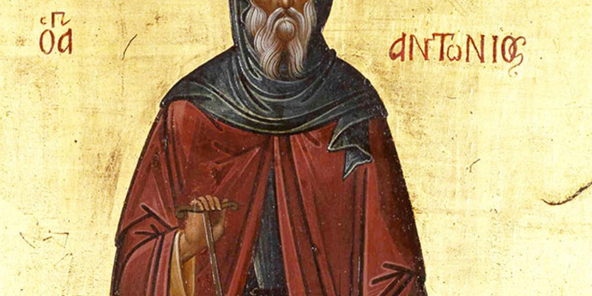 Sfântul Antonie cel Mare a trăit în a doua jumătate a secolului al III-lea și începutul secolului al IV-lea d.H. Este socotit întemeietorul vieții monahale. Născut în satul Coma din Egiptul de Mijloc, în anul 251, acest mare luminător al credinței a fost fiul unor creștini înstăriți, care l-au ajutat să deprindă calea credinței. Pe când avea 20 de ani, după moartea părinților săi, Sfântul Antonie a auzit în biserică cuvintele Domnului Hristos: “Dacă voiești să fii desăvârșit, du-te și vinde averea ta, dă-o săracilor și vei avea comoară în cer; după aceea, vino și urmează-Mi” (Matei 19, 21). Punând aceste cuvinte în inima sa, Antonie și-a împărțit averea săracilor, și-a încredințat sora unei comunități de creștine fecioare și s-a retras în singurătate.