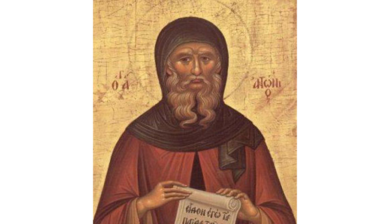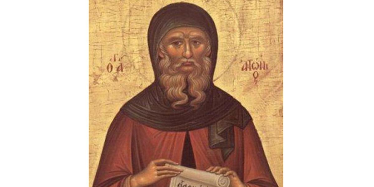 Sfântul Antonie cel Mare a trăit în a doua jumătate a secolului al III-lea şi începutul secolului al IV-lea d.H. Este socotit întemeietorul vieţii monahale. Născut în satul Coma din Egiptul de Mijloc, în anul 251, acest mare luminător al credinţei a fost fiul unor creştini înstăriţi, care l-au ajutat să deprindă calea credinţei. Pe când avea 20 de ani, după moartea părinţilor săi, Sfântul Antonie a auzit în biserică cuvintele Domnului Hristos: “Dacă voieşti să fii desăvârşit, du-te şi vinde averea ta, dă-o săracilor şi vei avea comoară în cer; după aceea, vino şi urmează-Mi” (Matei 19, 21). Punând aceste cuvinte în inima sa, Antonie şi-a împărţit averea săracilor, şi-a încredinţat sora unei comunităţi de creştine fecioare şi s-a retras în singurătate.