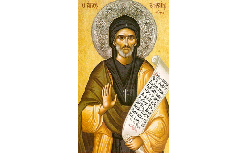 Supranumit “Harpa Duhului”, Sfântul Efrem Sirul s-a născut în jurul anului 306 d.H., în Nisibis, Siria. În ciuda persecuţiilor lui Diocleţian şi a faptului că în Nisibis îşi aveau sălaş o mulţime de religii păgâne, Sfântul Efrem Sirul a crescut într-un mediu creştin cu adevărat autentic. Din imnele sale se poate trage concluzia că părinţii săi erau amândoi creştini. Sfântul Efrem a crescut sub îndrumarea Sfântului Iacob, primul episcop din Nisibis, ales în anul 308. A fost botezat de tânăr şi apoi hirotonit diacon. Înzestrat cu darul lacrimilor şi cu un mare talent (poezia) pe care l-a pus în slujba Lui Dumnezeu, Sfântul Efrem şi-a început lucrarea de conducere a oamenilor către Hristos.