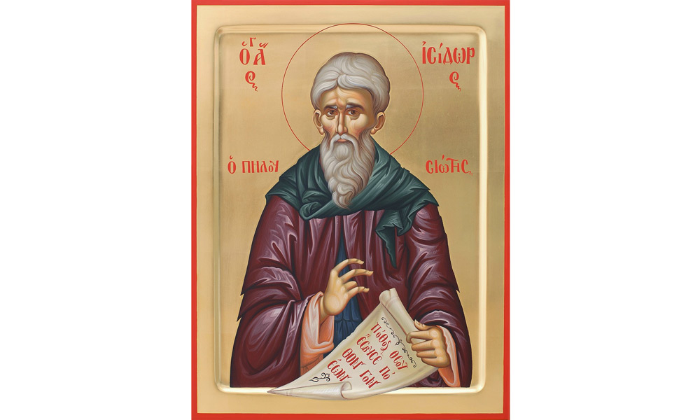 Născut în anul 360 d.H., Sfântul Isidor Pelusiotul este unul dintre sfinţii care s-au nevoit în Egipt. Rudă cu arhiepiscopul Teofil şi cu Chiril al Alexandriei, Isodor a devenit monah de tânăr, vieţuind pe Muntele Pelusion, în vremea împăratului Teodosie cel Mic. Istoricii bisericeşti mărturisesc despre viaţa sfântă şi înţelepciunea cu care a fost dăruit Isidor. De la el ne-au rămas multe cuvinte folositoare, îndeosebi sub forma scrisorilor.