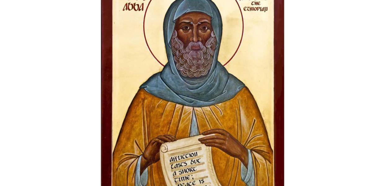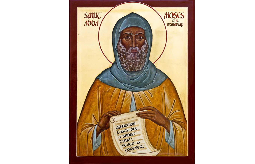 Sfântul Moise Etiopianul a fost sfinţit preot la bătrânete. El a ştiut, prin Domnul, care-i va fi ceasul morţii, dar şi felul în care va muri. Într-o zi, le-a zis ucenicilor să fugă ca sa-şi scape vieţile, deoarece mănăstirea avea să fie atacată de necredincioşi. Când ucenicii i-au cerut să vină cu ei, ca să scape, Avva Moise le-a zis că el a fost tâlhar în tinereţe şi că se cuvine ca acum să-şi ia răsplata pentru relele făcute, după cuvântul: “Toţi cei ce scot sabia, de sabie vor pieri!” (Matei 25: 52). Avva Moise a rămas în mănăstire împreună cu şase fraţi care nu au voit să-l lase singur. Şi au venit tâlharii şi i-au ucis pe toţi şapte. Aşa a trecut la cele veşnice Sfântul Moise Etiopianul, care ajunsese la vârsta de 75 de ani.