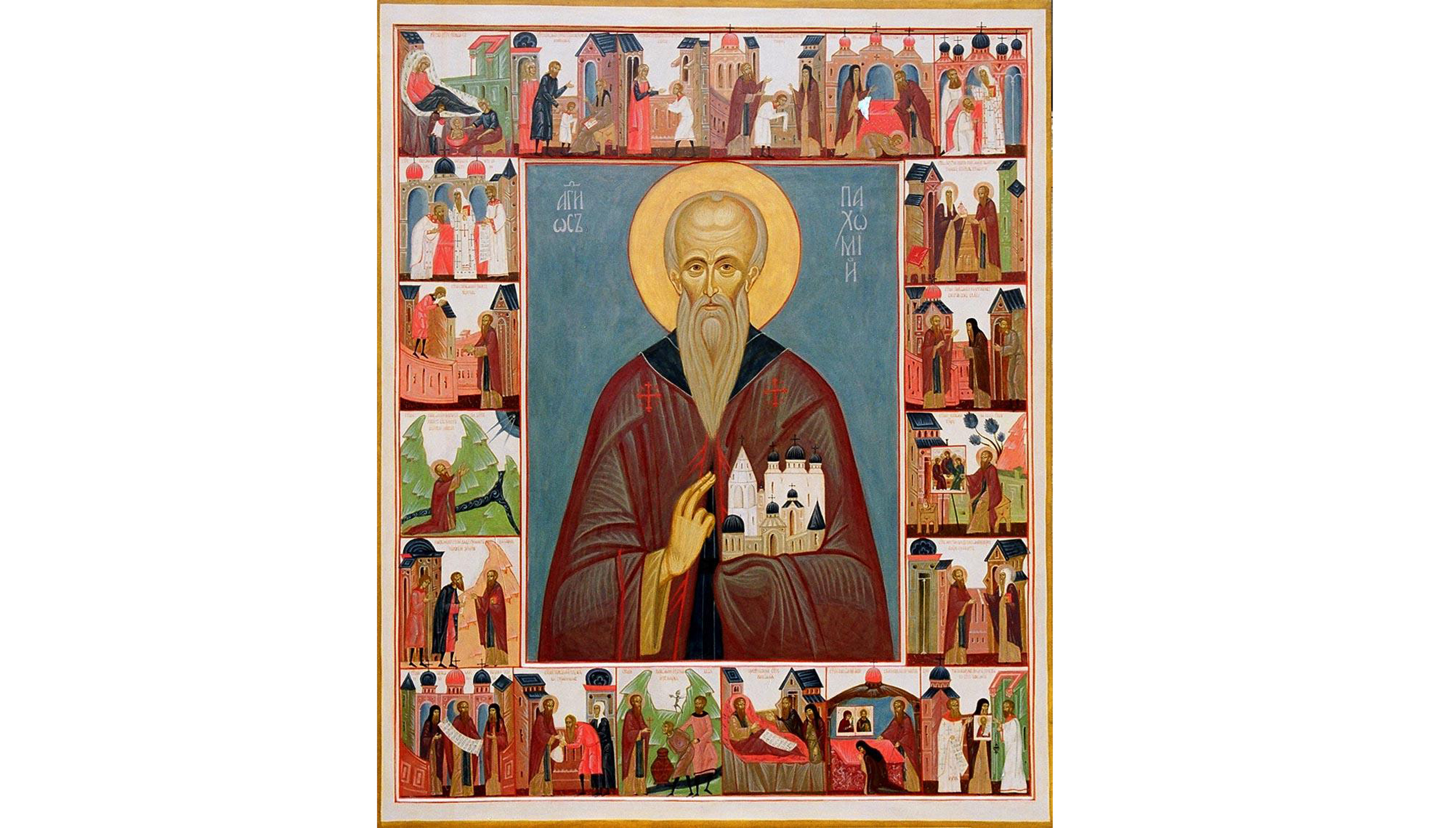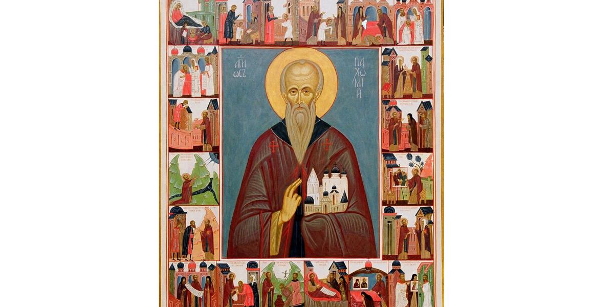 Cuviosul Pahomie s-a născut în Tebaida de Jos (Egipt) şi a vieţuit în timpul împăratului Constantin cel Mare (306-337 d.H.). Păgân fiind, Pahomie a luptat în armata împăratului Constantin, în faimoasa bătălie purtată contra lui Maxenţiu. După ce s-a creştinat, primind botezul, Pahomie s-a retras în pustiul Tebaidei, alături de pustnicul Palamon. După zece ani de nevoinţe, a ajuns în Tabenisi, unde un înger al Domnului i s-a înfăţişat îmbrăcat în rasă de schimonah şi i-a dăruit o tăbliţă pe care era înscrisă pravila unei mănăstiri cu viaţă de obşte. Îngerul i-a poruncit cuviosului să întemeieze o astfel de mănăstire, chiar în Tabenisi. Astfel, Pahomie a zidit mai multe chilii care, prin lucrarea Duhului Sfânt, au fost locuite de monahi cucernici.