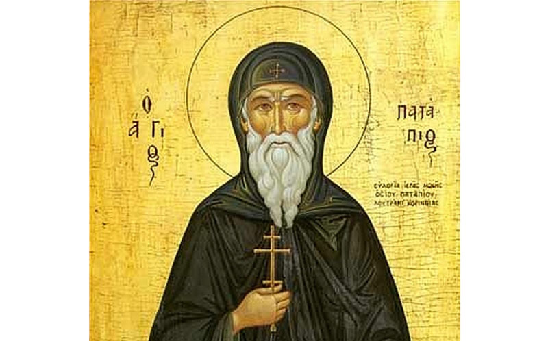 Originar din Tebaida Egiptului, Cuv. Patapie a trăit în sec. al VII-lea. Văzând de timpuriu deşertăciunea lumii, Patapie a ales viaţa monahală, nevoindu-se mulţi ani în pustia Egiptului. Auzind oamenii despre virtuţile sfântului, au început să vină în număr mare la el, spre a dobândi ajutor şi alinare. Temându-se de lauda oamenilor şi gândind că se va putea ascunde mai bine în mijlocul unei mari metropole decât în pustie, Patapie a mers la Constantinopol şi şi-a ridicat o colibă (în apropiere de Biserica Vlaherne). Ascuns în coliba sa şi necunoscut de nimeni, cuviosul şi-a continuat viaţa de nevoinţă, ca şi când ar fi fost în pustie.