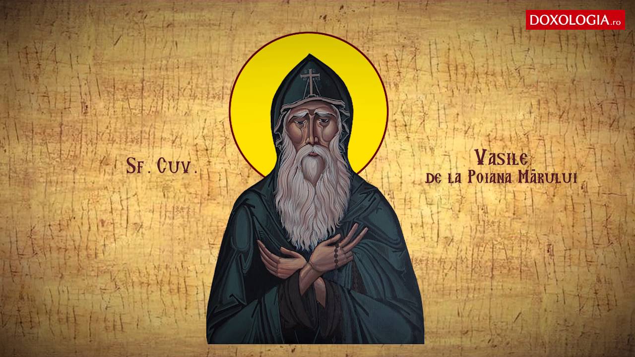 Sfântul Cuvios Vasile de la Poiana Mărului s-a născut în anul 1692 în localitatea Poltava din Ucraina. Vine în Țara Românească, foarte probabil pe vremea lui Constantin Brâncoveanu și a Mitropolitului Antim Ivireanu, când viața bisericească și culturală a Țării Românești era în apogeu. Împreună cu ucenicul său, ieroschimonahul Mihail, și cu alți călugări, intră în obștea Mănăstirii Dălhăuți, în apropierea orașului Focșani, unde rămâne 20 de ani. Aici este hirotonit preot și la scurt timp numit stareț, chiar dacă nu avea încă nici 30 de ani. Sfântul Vasile aduna în jurul său o obște de peste 40 de călugări sihaștri, pe care îi deprinde cu ascultarea, smerenia, tăcerea și cu rugăciunea minții. Astfel, starețul Vasile face din obștea sa o adevărată școală de trăire isihastă.