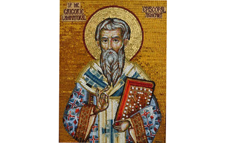 Sfantul Grigorie Luminatorul (240-332), Apostolul Armeniei s-a nascut la Valarshapat, capitala provinciei Ararat in Armenia. Traditia armeana il prezinta ca descendent al unei familii nobile. Inca de prunc Grigorie a fost trimis in Cezareea Capadociei, unde a fost crescut in credinta crestina si botezat. Tot aici se casatoreste si are doi fii: pe Vhartanes si Aristages.