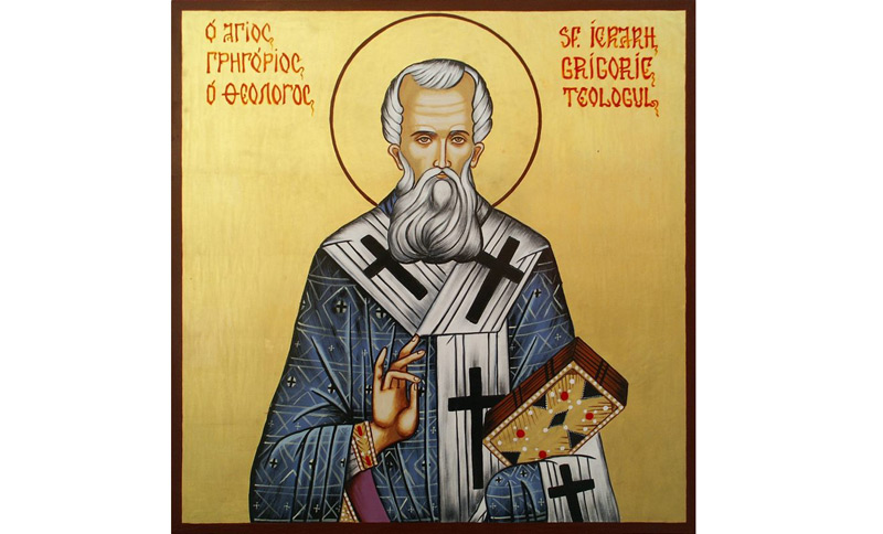 Sfântul Grigorie Teologul s-a născut într-o familie aristocrată din Arianz, în partea de sud-vest a Capadociei, în vecinătatea cetăţii Nazianz. Tatăl său a fost convertit de soţia sa, Nona, ajungând mai târziu episcop de Nazianz. Grigorie a studiat în Cezareea Capadociei, în Cezareea Palestinei şi în Alexandria Egiptului. Şi-a completat studiile la Atena, unde a stat 10 ani; în acest timp, s-a împrietenit cu Sfântul Vasile cel Mare.