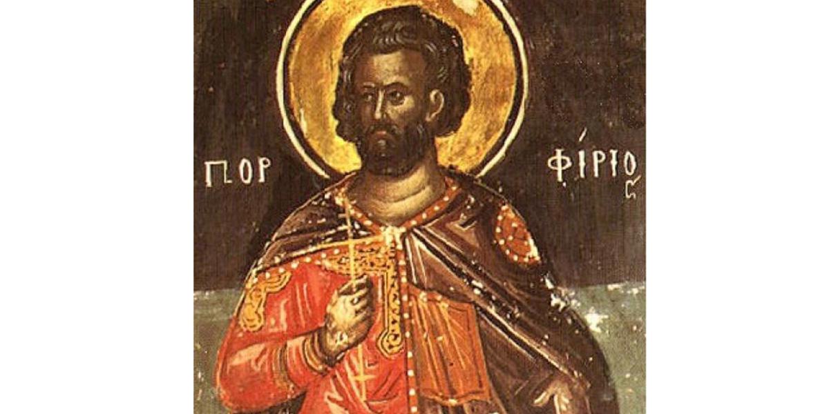 Sfântul Ierarh Porfirie s-a născut în oraşul Tesalonic, din părinţi înstăriţi. La vârsta de 25 de ani, a lepădat grija lumească şi s-a retras în pustia Egiptului, unde a fost tuns în monahism. După cinci ani de vieţuire la o mănăstire din Egipt, Porfirie a ajuns la Ierusalim. Acolo, a fost hirotonit preot de către Pravliu, patriarhul Ierusalimului şi i s-a încredinţat spre pază cinstitul lemn al Crucii Lui Hristos. După un timp, Dumnezeu i s-a descoperit, spunându-i: “Dă-mi Mie visteria - adică lemnul Crucii - pe care am adus-o la tine, pentru că voiesc să te însoţesc cu o mireasă cu adevărat săracă. Iar tu, luând-o, s-o împodobeşti, ca să-şi uite sărăcia cea dintâi”.Era chemarea sa la treapta de episcop în cetatea Gaza, un loc cu multe altare păgâne. Până la Sfântul Porfirie, nimeni nu a putut să cureţe cetatea Gaza de păgânism.