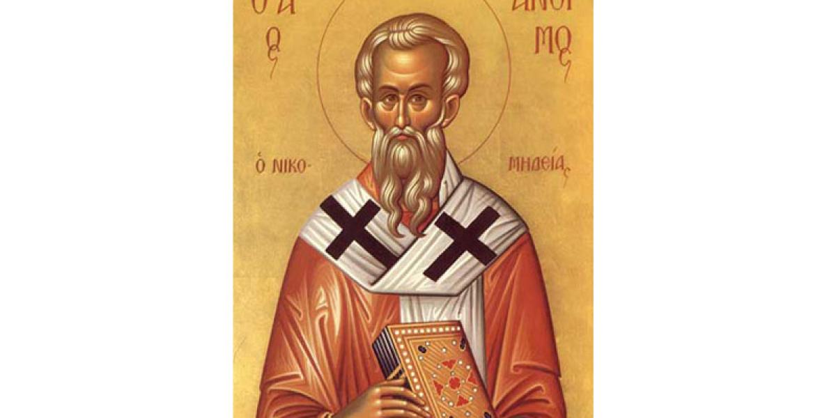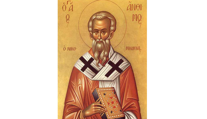Sfântul Mucenic Antim a fost episcopul cetăţii Nicomidia (provincia Bitinia din Asia Mică). La acea vreme, din porunca împăratului roman Diocleţian (284-305 d.H.), prigonitorul creştinilor, la anul 288 d.H., s-a dat foc bisericii din Nicomidia, murind pentru Hristos circa 20.000 de creştini (sfinţi mucenici a căror jertfă o cinstim în ziua de 28 decembrie). Antim episcopul s-a aflat în fruntea credincioşilor săi în această grea încercare şi i-a încurajat să-şi pună toată nădejdea în Dumnezeu. Atunci, prin harul Lui Dumnezeu, Sfântul Antim şi alţi câţiva creştini au scăpat de moarte şi s-au ascuns în munţii din împrejurimi.
