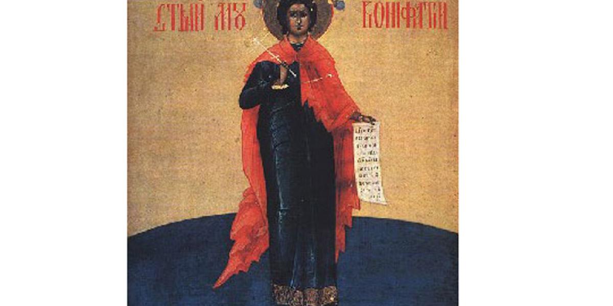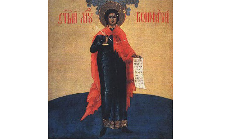 Sfântul Mucenic Bonifatie a trăit şi a pătimit pe vremea împăratului roman Diocleţian, marele prigonitor al creştinilor. A fost robul unei femei bogate, Aglaia, fiica proconsulului Romei. Din Sinaxarul ortodox aflăm ca Bonifatie vieţuia în păcate trupeşti cu stăpana sa şi mai era şi beţiv, înainte să-L afle pe Domnul Hristos. Nu spre defăimare spunem aceasta, ci pentru a ne descoperi cum păcătosul rob a devenit mai apoi mucenic al Domnului Iisus Hristos.
