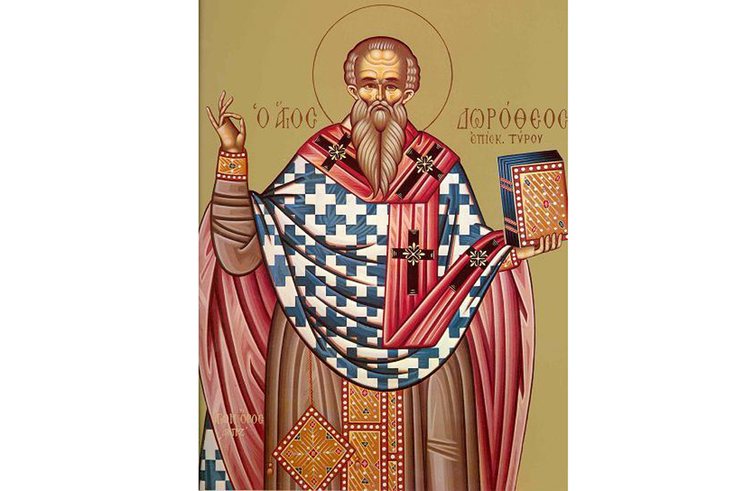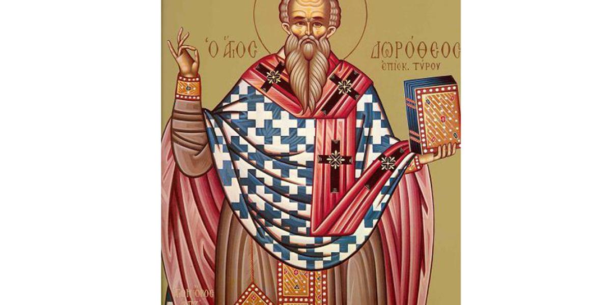 Sfântul Dorotei a fost episcop al cetăţii Tirului, pe vremea împărăţiei lui Diocleţian, păgânul împărat al Romei, iar pentru prigoana cea cumplită care era atunci împotriva creştinilor, el şi-a lăsat scaunul şi s-a ascuns prin locuri neştiute. După aceea, împărăţind marele Constantin şi Biserica lui Hristos luând alinare, Sfântul Dorotei s-a întors iarăşi în Tir la scaunul său şi păstorea bine turma oilor celor cuvântătoare, aducând pe mulţi de la rătăcirea închinării de idoli la Dumnezeu. El a trăit până pe vremea lui Iulian Paravatul, care, luând împărăţia, la început nu duşmănea pe faţă Biserica lui Hristos, ci în ascuns, poruncind boierilor săi celor de un gând cu el, care stăpâneau ţările, să muncească şi să ucidă pe creştini.