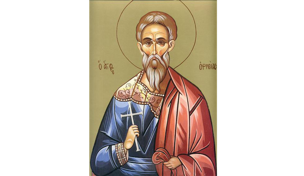 Sfântul Mucenic Ermie a fost ostaş în armata romană. În timpul împăratului roman Antonin Piul (138-161 d.H.) lui Ermie i s-a cerut să renunţe la credinţa în Domnul Iisus Hristos şi să jertfească zeilor păgâni. Ostaşul a refuzat cu demnitate şi, de îndată, a fost supus la cumplite chinuri: i s-au zdrobit dinţii cu o piatră, pielea feţei i-a fost tăiată cu un cuţit şi a fost aruncat în foc, dar, prin harul şi purtarea de grijă a Lui Dumnezeu a rămas viu şi nevătămat.