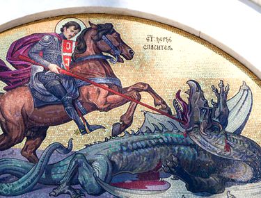 Sfântul Mucenic Gheorghe s-a născut în Capadocia, într-o familie creștină, și a trăit în timpul domniei împăratului Dioclețian. Încă de tânăr rămâne fără tatăl său, care a murit mărturisind credința creștină. Împreună cu mama sa, se mută în Palestina. Urmează cariera militară, ajungând comandant în armata împăratului Dioclețian. În anul 303, când împăratul a început persecuțiile împotriva creștinilor, Sfântul Gheorghe a mărturisit chiar înaintea lui Dioclețian credința în Hristos.