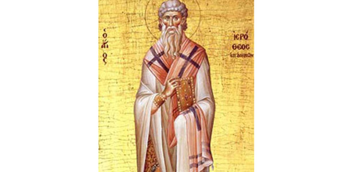 Sfantul Mucenic Ierotei a primit credinta in Hristos de la Sfantul Apostol Pavel, care l-a botezat si l-a asezat episcop in Atena. A fost insotitorul Sfantului Dionisie Areopagitul. Sfantul Ierotei a fost primul episcop al Atenei. A participat la inmormantarea Maicii Domnului, unde a facut inceput cantarilor, la prohodirea Maicii Domnului. A trecut la cele vesnice pe 4 octombrie.