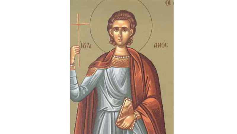 Sfântul Mucenic Iulian s-a născut într-o familie de aristocraţi din Tarsul Ciliciei şi a trăit pe vremea împăratului roman păgân Diocleţian. Iulian a primit moarte de mucenic când era în vârstă de 18 ani, pe vremea persecuţiei împotriva creştinilor. Călăii păgâni l-au torturat timp de un an, încercând să-l facă să se lepede de credinţa în Domnul Iisus Hristos. Aceştia au arestat-o şi pe mama lui Iulian, silind-o să-şi convingă fiul să se lepede de Hristos; ea însă l-a sfătuit să meargă la moarte cu mulţumire, cu nădejde şi cu bucurie. Sfântul Mucenic Iulian a fost legat într-un sac plin cu şerpi veninoşi, pe care l-au aruncat apoi în mare.