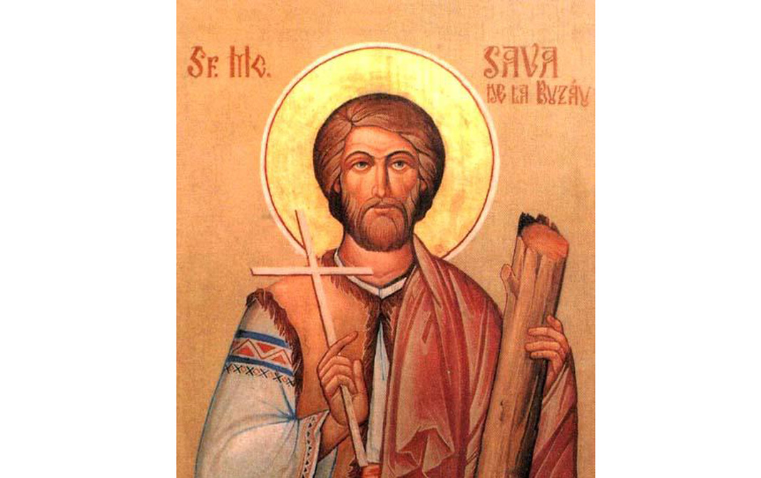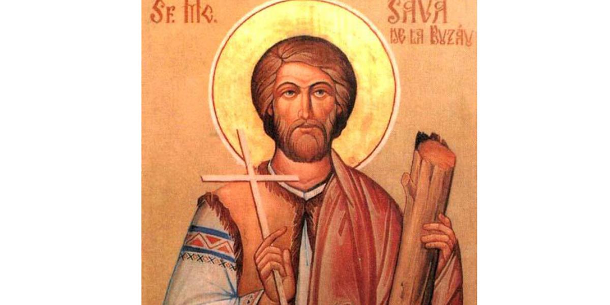 Sfântul Mucenic Sava s-a născut în anul 334 d.H., într-un sat din ţinutul Buzăului. Părintele său duhovnicesc a fost preotul Sansala. Amândoi erau călugări misionari în ţinutul Buzăului (unde se pare că era şi o episcopie) şi converteau la creştinism daco-romani, goţi şi tot felul de barbari închinători la idoli.