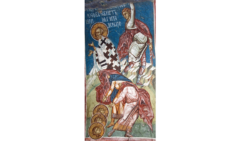 Sfântul Mucenic Vavila a trăit şi a murit ca martir pe vremea împăratului roman Decius (249-251 d.H.), prigonitorul creştinilor, împreună cu trei copii - Urban, Prilidjan şi Epoloniu - şi cu mama lor, Cristodula. La acea vreme, în timpul şederii sale în Antiohia, împăratul păgân a organizat o mare sărbătoare în cinstea zeilor. Episcopul Vavila slujea Sfânta Liturghie în biserică şi se ruga pentru creştini, când a auzit că însuşi Decius vrea să intre în sfântul ăcaş, curios să cunoască Sfintele Taine şi să profaneze lăcaşul Domnului.