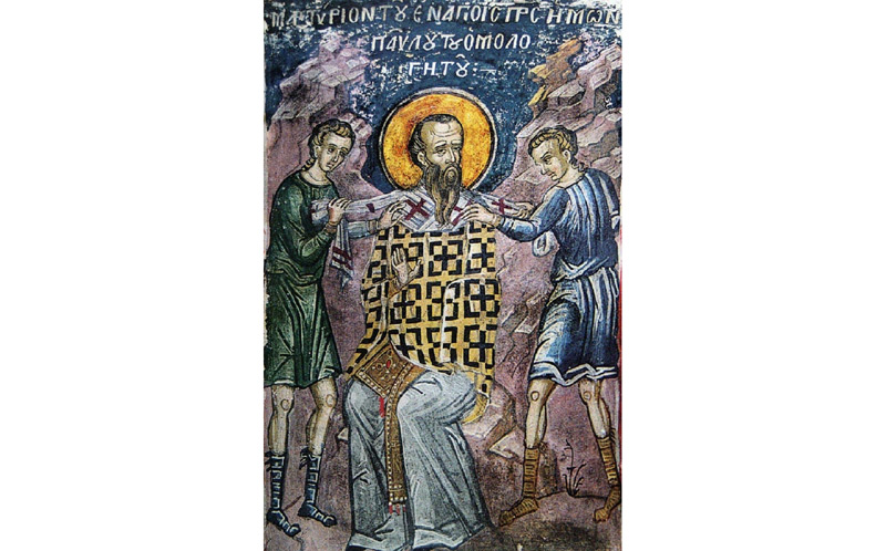 Sfântul Pavel Mărturisitorul a fost repus în scaun la insistenţele împăratului din Apus, Constantin al II-lea, fratele lui Constanţiu. După moartea lui Constantin, însă, Pavel a fost exilat la Cucuzon, în Armenia Mare, unde avea să fie ucis. Pe când se afla la slujirea Sfintei Liturghii, Patriarhul Pavel a fost sugrumat de arienii revoltaţi cu propriul omofor. În timpul domniei împăratului creştin Teodosie, moaştele Sfântului Pavel Mărturisitorul au fost mutate la Constantinopol, iar în anul 1236 au fost aduse la Veneţia.