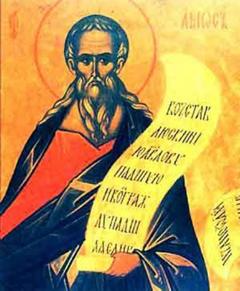 "A proorocului Tău Amos pomenire, Doamne, prăznuind, printr-însul Te rugăm: mântuieşte sufletele noastre!" (Troparul Sfântului Prooroc Amos)
