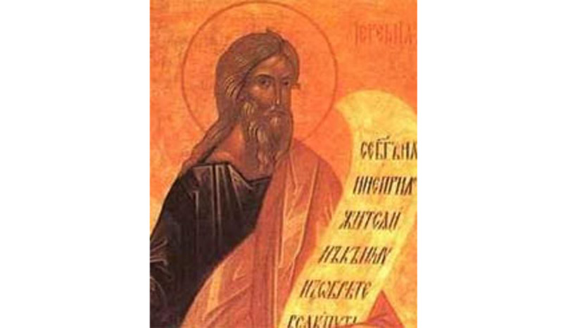 Sfântul Prooroc Ieremia a trăit în jurul anului 600 î.H., când evreii au fost luaţi în robie, de către împăratul Nabucodonosor. Numele său înseamnă “Iahve înalţă”, era preot, iar profeţia sa a fost aşternută pe sul de Proorocul Baruh. Ieremia a fost numit “profet al lacrimilor” sau al plângerilor, deoarece a plâns pentru poporul iudeu, care se depărtase de Dumnezeu şi slujea idolilor şi care atrăsese, astfel, pedeapsa divină.