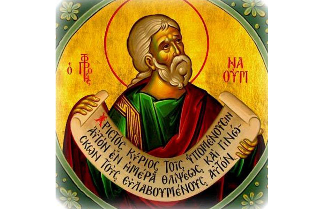 Sfântul Prooroc Naum, pomenit în Vechiul Testament şi sărbătorit astăzi de creştinii ortodocşi, era originar din cetatea Elcheseea, din seminţia lui Simeon a lui Israel. A trăit cu 460 de ani înainte de întruparea Domnului nostru Iisus Hristos. Proorocul Naum le-a vestit ninivitenilor că cetatea lor va pieri din pricina păcatelor pe care le fac. Ninivitenii, care se pocăisera în urma propovăduirii Proorocului Iona, au revenit după puţin timp la faptele lor cele rele. De aceea, marea cetate Ninive a fost scufundată cu totul, în urma unui mega cutremur, într-un iezer, după cum vestise Sfântul Prooroc Naum.