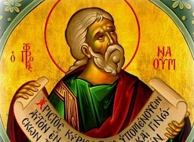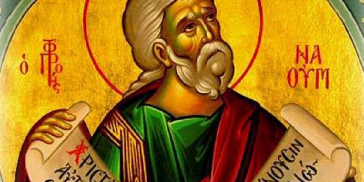 Sfântul Prooroc Naum, pomenit în Vechiul Testament şi sărbătorit astăzi, era originar din cetatea Elcheseea, din seminţia lui Simeon. A trăit cu 460 de ani înainte de întruparea Domnului Iisus Hristos. Naum le-a vestit ninivitenilor că cetatea lor va pieri. Numai că ninivitenii, care se pocăisera în urma propovăduirii Proorocului Iona, au revenit după puţin timp la faptele lor cele rele. De aceea, marea cetate Ninive a fost scufundată, în urma unui teribil cutremur, într-un iezer, după cum vestise Sfântul Prooroc Naum.