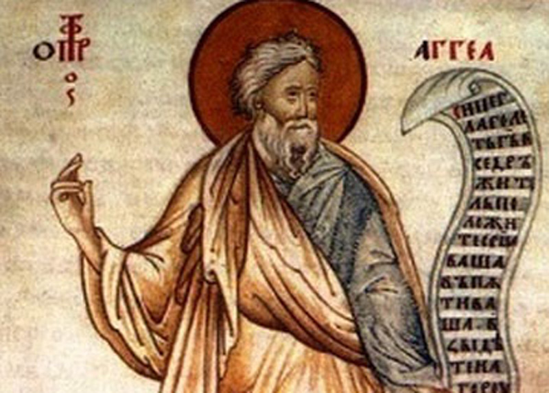 Agheu a fost unul din ultimii proroci ai Vechiului Testament . Numele "Agheu“ inseamna "sarbatoare“, "cel ce sarbatoreste“ sau "cel ce este sarbatorit“. Acesta s-a nascut in Babilon, in timpul robiei babiloniene a poporului lui Israel, cu 470 de ani inainte de Hristos. Tanar fiind, a mers la Ierusalim indemnand pe Zorobabel si pe losua preotul sa reconstruiasca Templul Domnului, prorocind ca noul Templu va avea o cinste mai mare decat a avut Templul ridicat de Solomon: "Si slava acestui templu de pe urma va fi mai mare decat a celui dintai", zice Domnul Savaot (Agheu 2, 9), aceasta pentru ca Mantuitorul Hristos avea sa intre in acest nou Templu. Sfantul Proroc Agheu inca din timpul vietii sale a putut vedea ridicarea parti din Templul ridicat de Zorobabel.