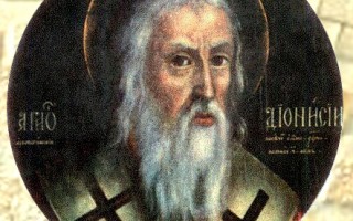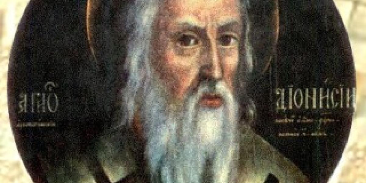 Sfântul Dionisie Areopagitul s-a născut în marea metropolă Atena. După ce a urmat studii de filosofie în cetatea natală, Dionisie a mers în Egipt pentru a le desăvârşi, dobândind, astfel, înţelepciunea antichităţii. Pe când se afla Dionisie în Egipt, Mântuitorul Iisus Hristos era răstignit pe Cruce la Ierusalim. Văzând întunericul care a cuprins tot cerul la moartea Mântuitorului Hristos, Dionisie a rostit cuvintele ptofetice: “Sau Dumnezeu pătimeşte, sau lumea aceasta văzută se sfârşeşte”.
