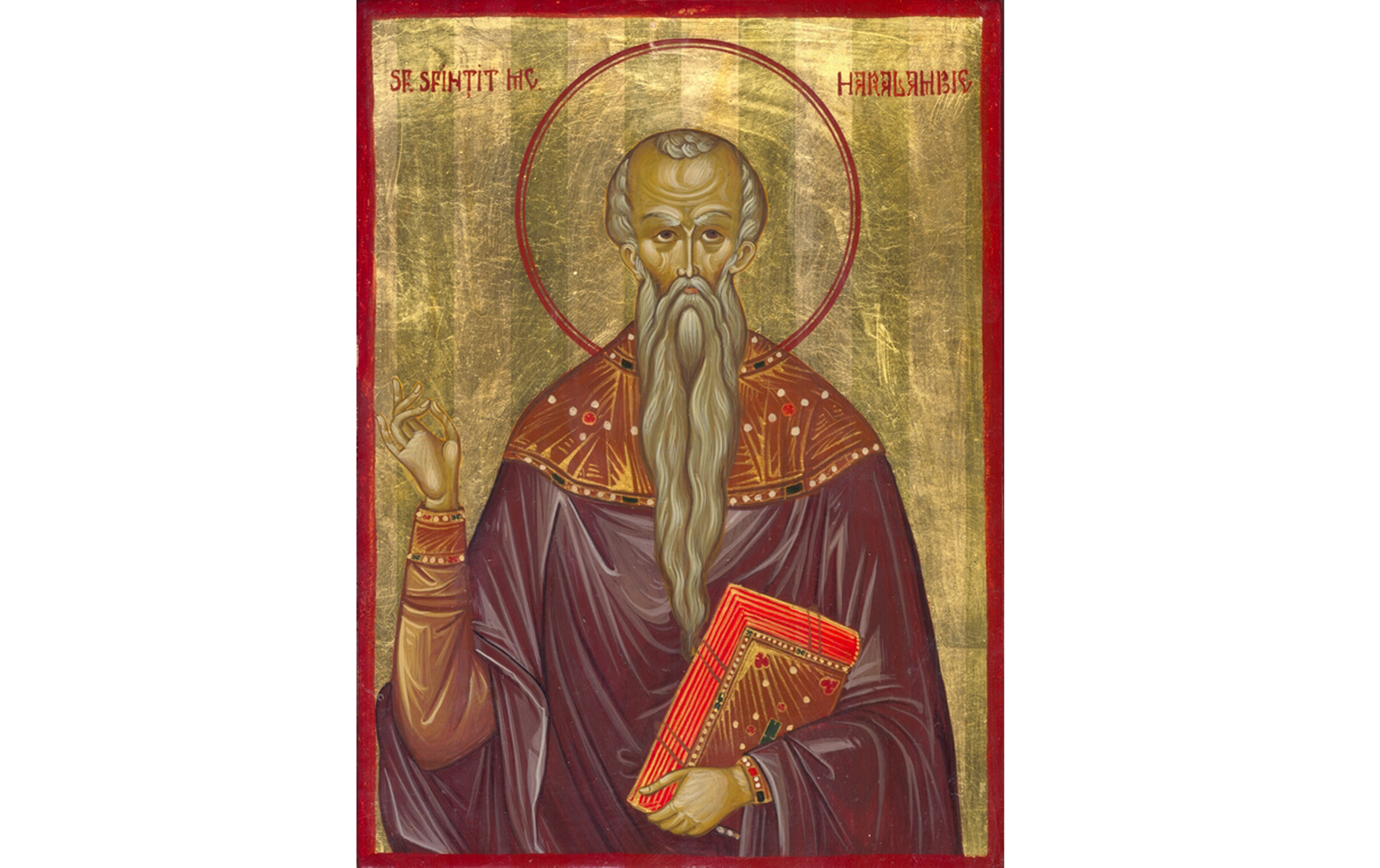 Sfântul Sfinţit Mucenic Haralambie a fost episcop în cetatea Magneziei din Asia Mică (Turcia de astăzi), în vremea împăratului roman Septimiu Sever (193-211 d. H.). Ajuns la venerabila vârstă de 113 ani, Sfântul Haralambie a fost supus la felurite chinuri, pentru că nu s-a lepădat de credinţa în Iisus Hristos. Potrivit tradiţiei, în timpul torturilor, mâinile guvernatorului Lucian s-au lipit de trupul sfântului şi au rămas acolo până când acesta s-a rugat pentru el. În faţa acestei minuni, păgânii care-l torturau pe Haralambie s-au convertit la creştinism.